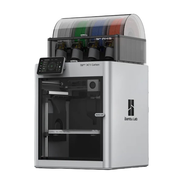 Можливість багатоколірного друку за допомогою автоматичної системи подачі пластику AMS. Максимальна швидкість друку 500 мм/с, прискорення до 20000 мм/с²). Максимальна температура наконечника 300°C.